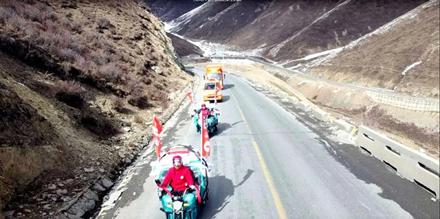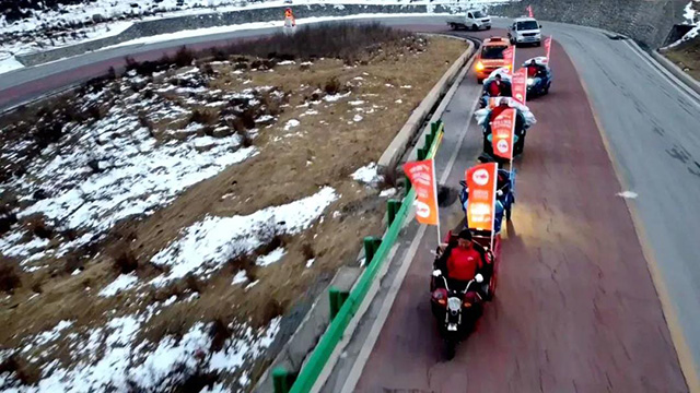 挑戰(zhàn)活動從北山十二盤坡坡底出發(fā),當(dāng)時(shí)氣溫近-8℃,卻絲毫沒有影響挑戰(zhàn)的熱情。在保障安全的前提下,6名騎手駕駛著最大載重2000斤的金彭電動三輪車盤旋而上,最終總耗時(shí)約2小時(shí)成功抵達(dá)目的地。這條有著“青藏高原最美盤山公路”之稱的路線,見證了金彭不斷推動行業(yè)技術(shù)進(jìn)步和服務(wù)用戶的堅(jiān)定決心,再次夯實(shí)了金彭“山地車 大功率”的產(chǎn)品屬性。