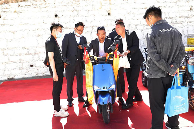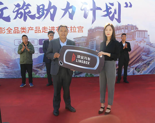 隨后,金彭集團副總經理鹿潔及金彭集團品牌總監趙明,分別代表凌寶汽車和金彭品牌向布達拉宮交接產品。布達拉宮的領導們分別給金彭的產品戴上哈達,布達拉宮的工作人員也對金彭公司的產品表現出濃厚的喜愛。