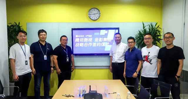 騰訊PCG微視內容總監耿小勇、金彭集團總裁劉志培簽約相關領導在簽約現場合影留念