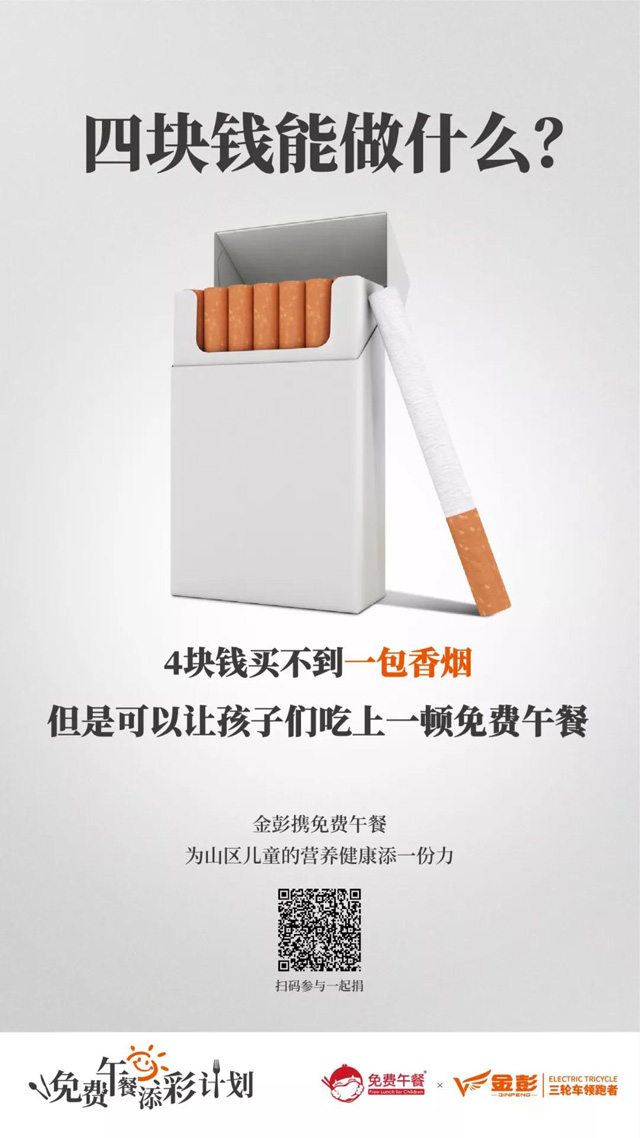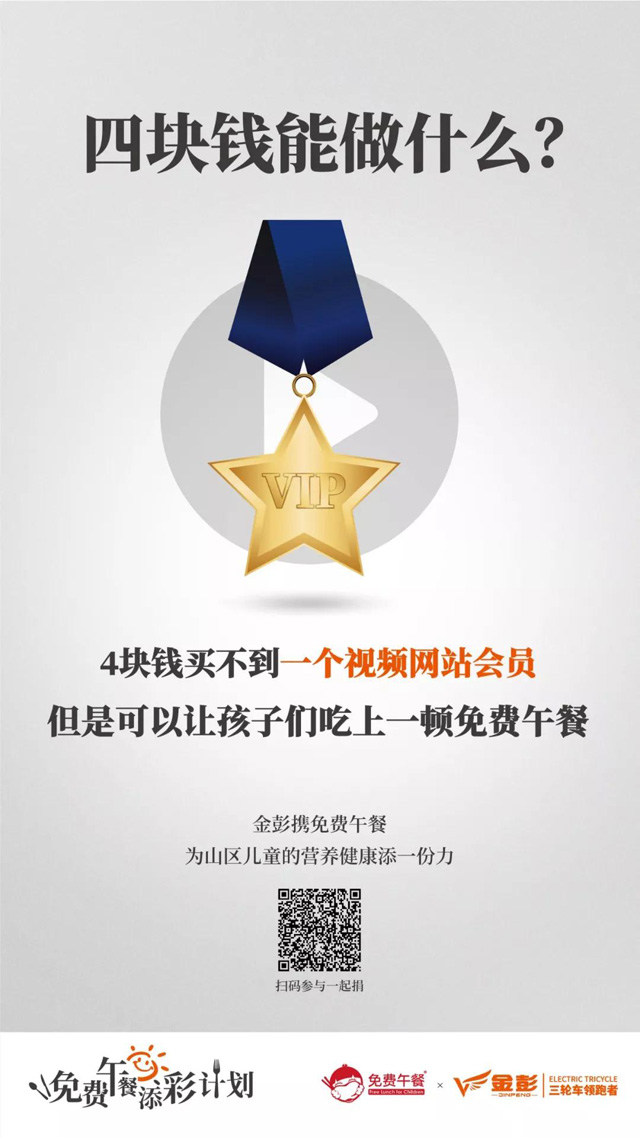 今年的6月1日,金彭將再次攜手免費午餐,前往河南南陽臥龍區龍王溝風景區陳家崗小學,針對此次公益活動,金彭發起了添彩計劃支援者征集令。