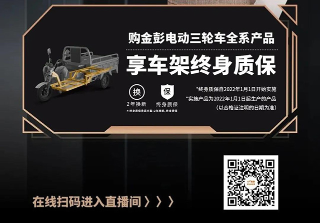 重磅官宣 | 金彭承諾電動三輪車全系產(chǎn)品車架終身質(zhì)保