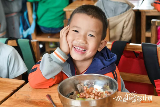除了彩泥課堂,金彭還給孩子們帶來了熱氣騰騰的免費午餐,讓孩子們吃得更加健康、營養,以幫助孩子們快樂成長。那些純真的眼眸,那些天真的笑容,讓參與這場公益里的每一個人都感覺到欣慰。
